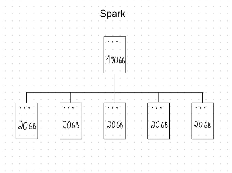 Uma das soluções para processar vários GBs/TBs de dados é recorrer ao processamento distribuído por meio do Spark. Imagine que um computador demora 10h para processar um arquivo de 100GB sozinho. Usando Spark, essa tarefa é dividida entre múltiplos “computadores paralelos”, chamados “nodos”. Se tivermos 5 nodos trabalhando ao mesmo tempo, em vez de um só, a tarefa que levaria horas pode ser concluída em minutos. De maneira bem simples, é o mesmo que comparar uma pessoa carregando 100 tijolos sozinha com uma equipe de 5 pessoas carregando 20 tijolos cada uma.